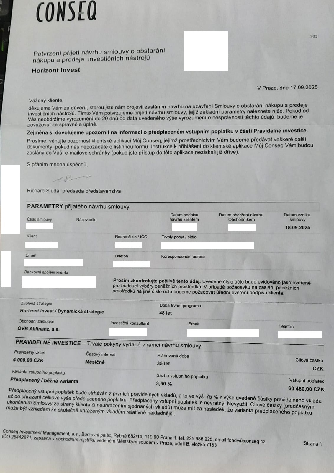 Společně Vám pomohu otevřít vlastní, bezpečné investiční účty u prověřených a spolehlivých bank či investičních společností. Připravím první investiční pokyny — Vy je zkontrolujete a schválíte — a poté začneme s realizací. Veškeré investice probíhají transparentně na Vaše jméno. Samotný výběr společnosti, u které jsou Vaše prostředky „uloženy“, má přitom zásadní vliv na to, jak s investicí můžete nakládat a za jakých podmínek. I proto je volba konkrétní instituce nedílnou součástí investičního rozhodování.